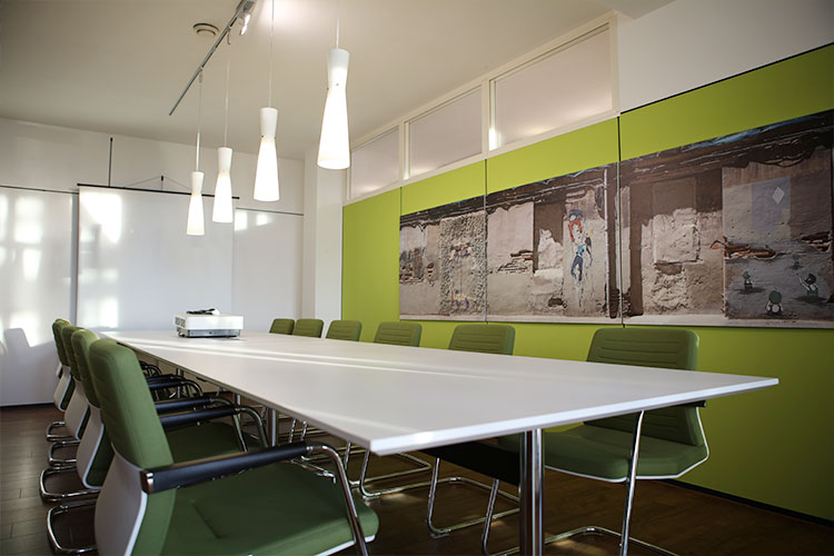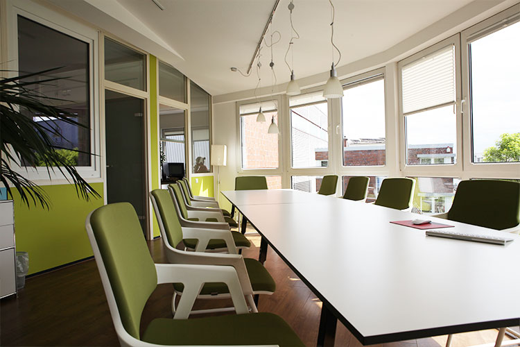Mehr als 750 qm, dreizehn große, helle und freundliche Büroräume, ein Fotostudio, Konferenz- und Schulungsräumlichkeiten und ein großzügiges Foyer.