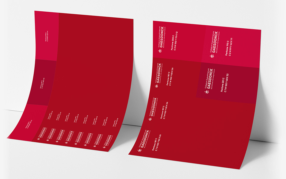 Das Corporate Design des Internatsgymnasiums Gaesdonck fußt auf der mittelalterlichen Geschichte des Internats und einem traditionell christlichen Bezug. In intensiven Kundengesprächen und nach Analyse historischer Schriften haben wir ein Logo entwickelt, in dem ein stilisiertes Antonius- oder Taukreuz mit drei Sternen als eingefasstes Signet fungiert. Das Signet wurde so entwickelt, dass es auf variablen Flächen sowohl als Positiv- oder Negativ-Element fungieren kann.