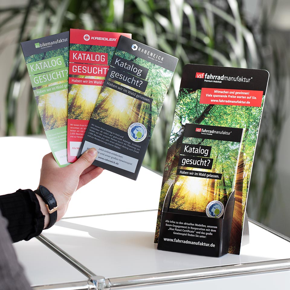 Der umweltbedingte Verzicht auf gedruckte Kataloge zur Auslage im Einzelhandel wurde anfänglich intensiv diskutiert. Unsere clevere Kommunikationslösung am POS und das Flankieren des Papierverzichts mit Pflanzaktionen im Regenwald, haben für eine riesengroße Akzeptanz im Handel gesorgt. Nebenbei profitieren Marken ebenso nachhaltig wie die Umwelt.