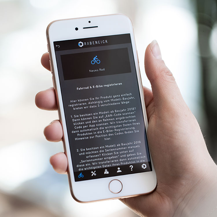 E-Bikes steuern, Produkte registrieren, Services finden – die My Bike App von Rabeneick bietet unverzichtbare Features zur Steuerung von E-Bikes und interessante Services zur Kundenbindung.