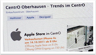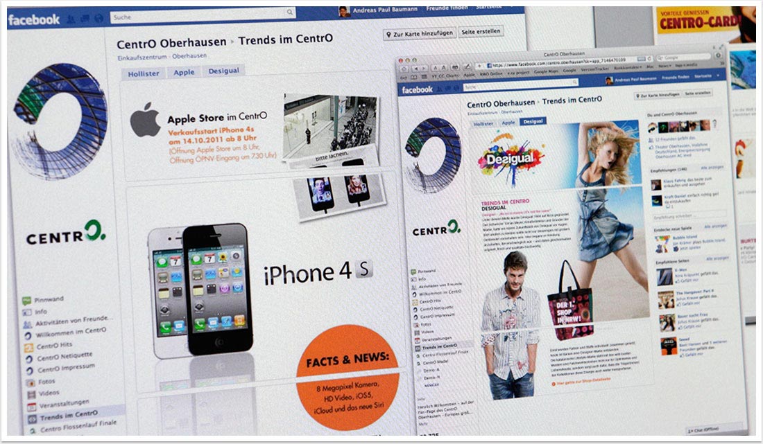 Auch auf Facebook muss ein Shopping Center wie das CentrO Oberhausen Präsenz zeigen. Aus erster Hand erfahren die Fans Informationen zu neuen Trends, Verkaufsstarts und der Eröffnung von neuen Shops in ihrem CentrO.