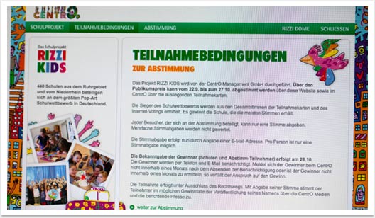Webdesign für Online-Malwettbewerb für Centro Rizzi Kids Voting by bgp e.media - Teilnahmebedingungen Unterseite