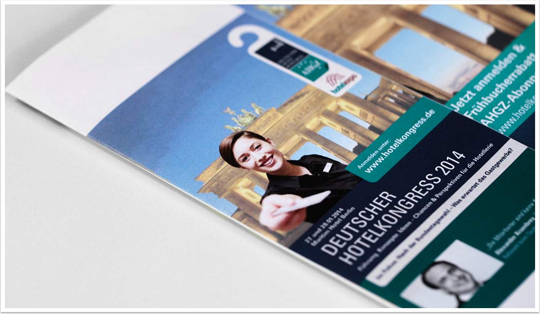 Das Ergebnis ist ein flexibler Design-Baukasten für verschiedenste Maßnahmen. Vom Editorial-Design für Kongressunterlagen, Broschüren oder Flyer hin zu Designvorlagen für Anzeigen verschiedenster Formate oder Werbepostkarten haben wir dem Kunden ein praktikables System an die Hand gegeben, dass sich im täglichen Einsatz bewährt.