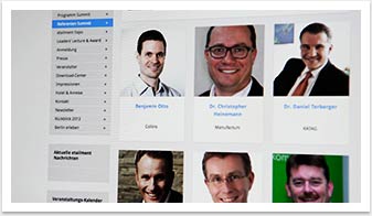 Responsives Webdesign (RWD) für The Conference Group by bgp e.media - Closeup Kacheln Referenten und Aussteller