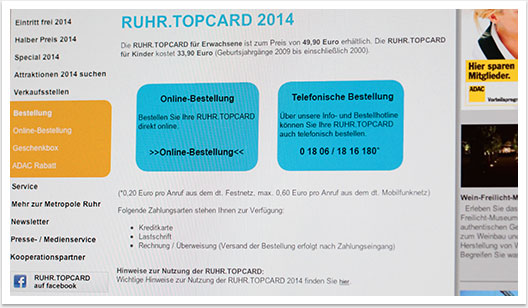 Die RUHR.TOPCARD Website