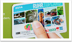 Die RUHR.TOPCARD bietet bei über 90 Freizeitzielen in der Metropole Ruhr und den angrenzenden Gebieten einmalig freien Eintritt im Kalenderjahr. Darüber hinaus bietet die RUHR.TOPCARD 50 % Ermäßigung bei Theatern, Varietés und beliebten Großattraktionen in der Region. Das Portfolio der Card wird bestimmt von der attraktiven Mischung aus mittlerweile fast 170 Highlights der Industriekultur, Zoos, Freizeitbädern, Fahrgastschifffahrten, Museen, kulturellen Einrichtungen und sportlich, spielerischen Destinationen.