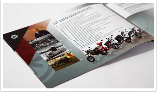 Unser Kunde Kreidler geht im Jahr 2015 mit einer komplett überarbeiteten Produktpalette im Segment Motorfahrzeuge an den Start. Selbstverständlich wurde auch der Katalog entsprechend angepasst. Auf Grundlage des Kataloges der Saison 2014 wurde das Designkonzept überarbeitet. Sämtliche Bilder und Texte der unterschiedlichen Produktkategorien für die neue Kollektion wurden neu erstellt und entsprechend implementiert.