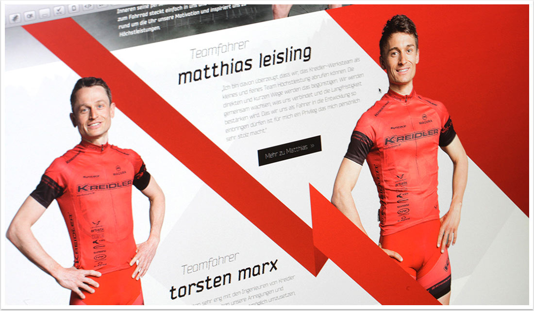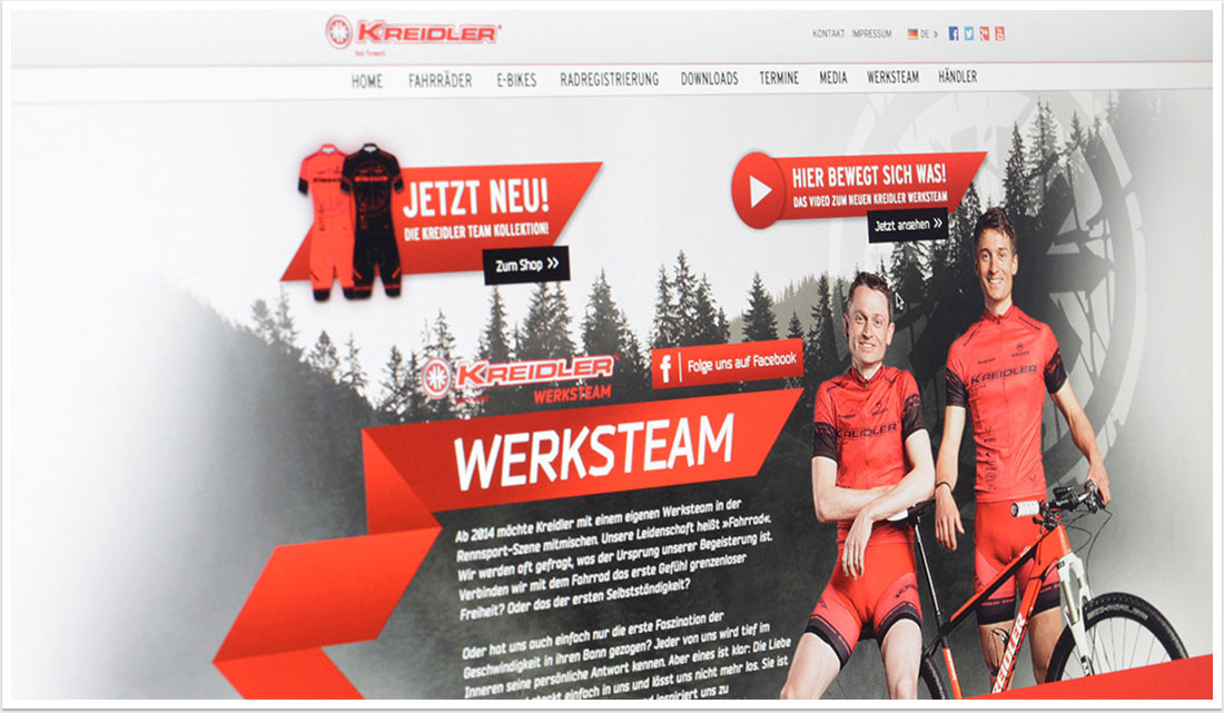 bgp e.media intergriert einen CMS e.sy basierten Onepager in die aktuelle Website der Marke Kreidler. Dort lassen sich die wichtigsten Informationen zu Fahrern, Bikes, Terminen und Ergebnissen nachlesen. Das Screendesign im stylischen Kreidler “rot” ist ein echter Hingucker!