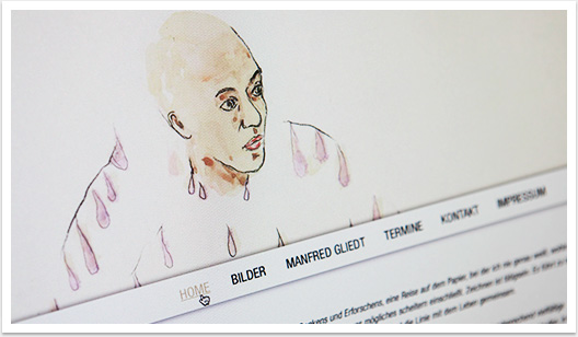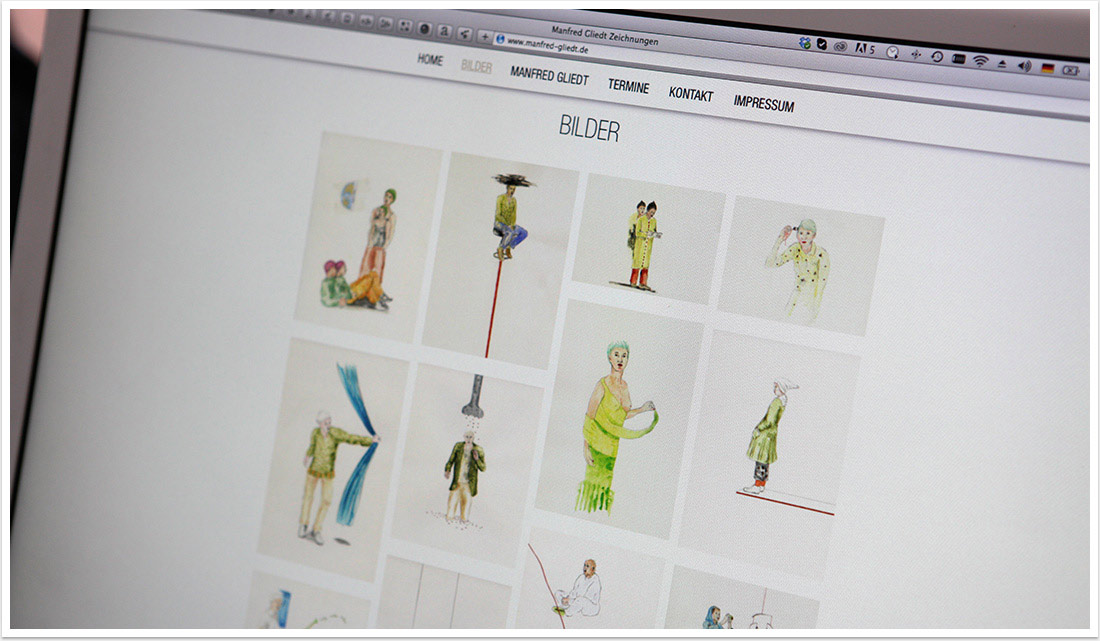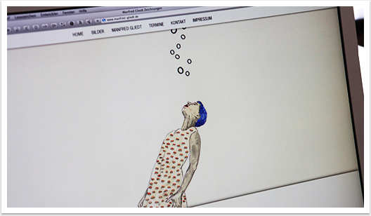 Der Oberhausener Künstler Manfred Gliedt bringt ungewöhnliche Momente und poetische Kurzgeschichten mit Wirtsstiften und Gouache-Farben stets kleinformatig zu Papier. Die filigranen Arbeiten führen den Betrachter Bild für Bild in die zerbrechliche Welt der Gefühle und Träume. Für die Online-Präsentation des Künstler haben wir eine Website kreiert, die den Betrachter ganz nah an die kleinen Bilder heranführt.