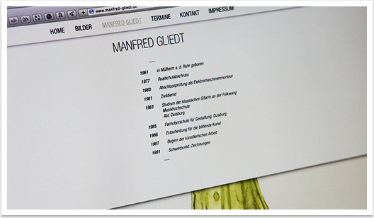 Die von bgp e.media responsiv umgesetzte Seite auf Basis des WordPress CMS erzählt auf nur einer Ebene alles Wissenswerte über Bilder, Ausstellungen, Termine und Manfred Gliedt selbst.