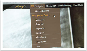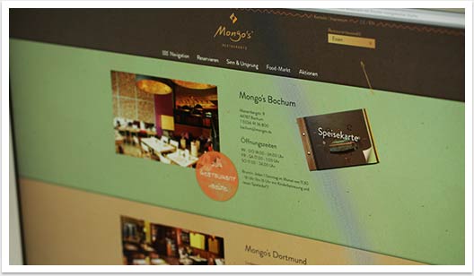 Sehr stylisch und geprägt von auffallenden Parallax-Elementen erscheint die neue Website unseres Kunden Mongo’s Gastro GmbH in zeitgemäßem, responsivem Webdesign. In Zusammenarbeit mit Bionic Systems entwickelten wir ein modernes Screendesign das mit einer Vielzahl verspielter grafischer Elemente sowie durch großformatige Bildelemente atmosphärisch dicht beeindruckt.