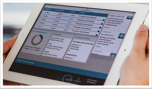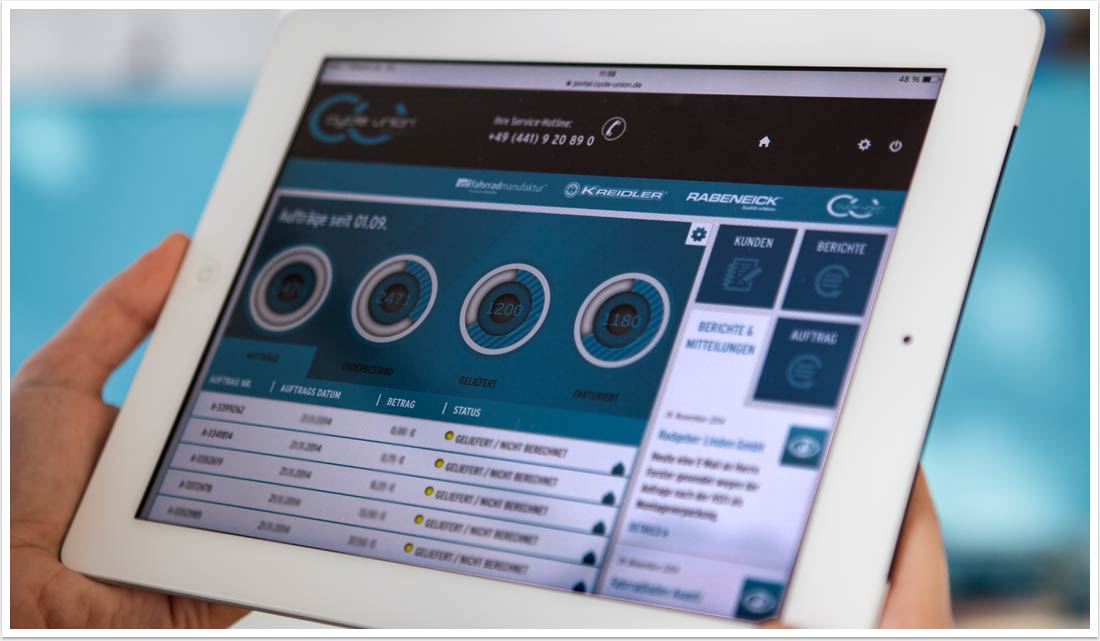 Das B2B-Portal von New Cycle dient, neben seiner klassischen Verwendung im Sinne eines modernen CRM, vor allem als vertriebsunterstützendes Order- und Bestellsystem. Via Schnittstellen und automatisiertem Webservice bildet das System stets in Echtzeit alle aktuellen verfügbaren Daten des Inhouse-Systems zu Warenbeständen und Lieferzeiten ab.