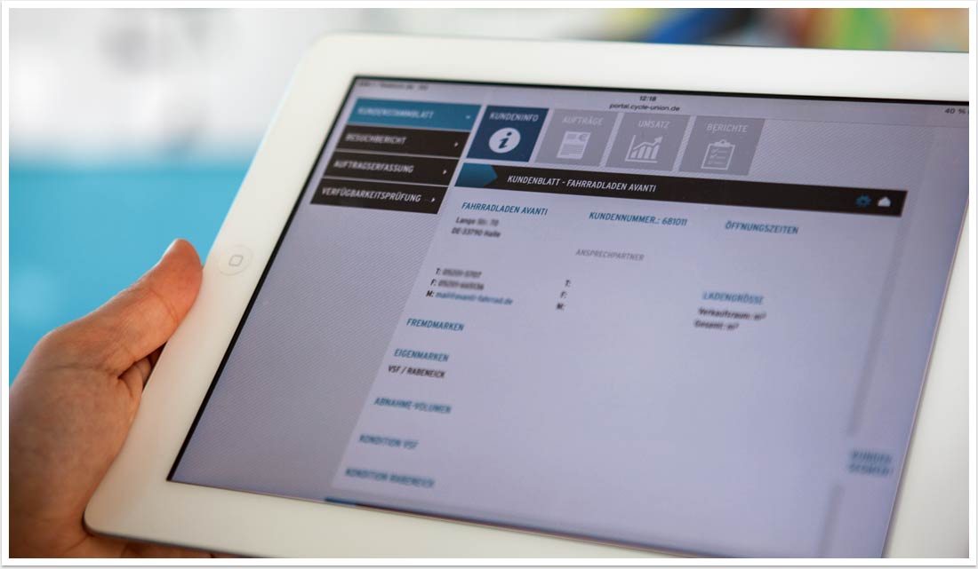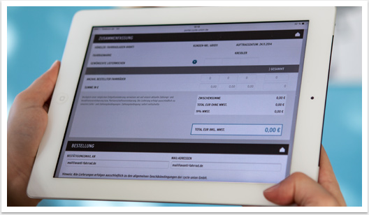 Die von bgp e.media auf Basis von Google Chrome entwickelte, betriebssystem- und endgeräteunabhängige Tablet App bildet stets den Ist-Zustand zum jeweils letztmöglichen Online-Kontakt ab und gewährleistet somit eine unterbrechungsfreie Vertriebskommunikation. Die gewonnenen Informationen und Bestelldaten werden auf dem jeweiligen Endgerät zwischengespeichert und vom System beim nächsten Netzkontakt selbstständig und automatisiert an das Inhouse-System von New Cycle übermittelt.