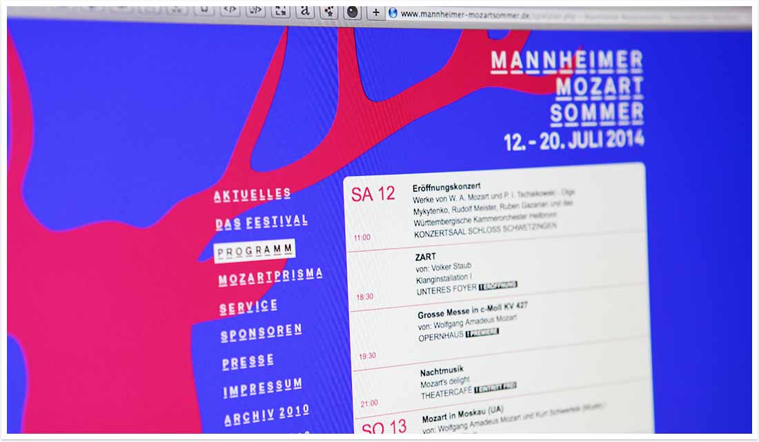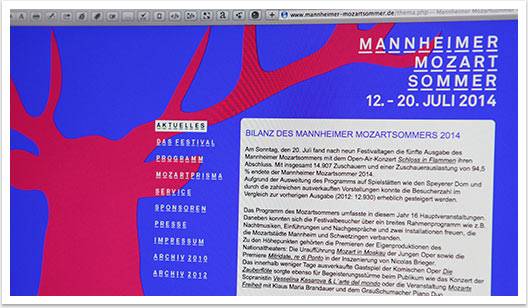 Screendesign und CMS e.sy für den Mannheimer Mozartsommer