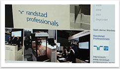 Der Personaldienstleister randstad professionals ist ein Unternehmen der randstad Gruppe Deutschland. Bundesweit verfügt die Gruppe über 500 Niederlassungen in mehr als 300 Städten. Rund 63.000 qualifizierte Mitarbeiter aus den Bereichen Engineering, IT-Services und Management Solutions kommen in allen Wirtschaftsbranchen zum Einsatz. Kunden und Mitarbeitern werden dabei alle Formen der vertraglichen Zusammenarbeit – von der Arbeitnehmerüberlassung, über die Personalvermittlung, den Dienst- oder Werkvertrag bis hin zum Freelaning – angeboten. Das Leistungsportfolio von randstad professionals umfasst Zeitarbeit, Professional Services, Personalvermittlung, HR-Lösungen und Inhouse-Services.