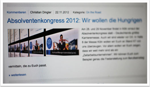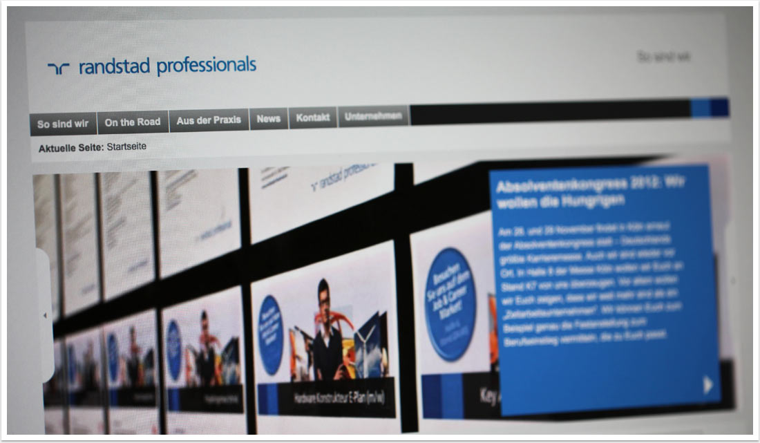 Social Media Kommunikation für die Professionals des PersonaldienstleistersWer im Web viel zu sagen hat und außerdem möchte, dass seine Inhalte kommentiert und diskutiert werden, der braucht einen Blog. Als modernes, offen kommunizierendes Unternehmen ist randstad professionals diesen Schritt mit bgp e.media gegangen. Der Personaldienstleister nutzt den Blog als formellen sowie informellen Social Media Kanal. Wir haben dem Anforderungsprofil entsprechend, einen klassischen Blog mit erweiterten Funktionen realisiert. Das auf WordPress basierende System bietet das einfache Anlegen von Themen im Frontend-Editing, das öffentliche Kommentieren nach Opt-In per E-Mail, eine Beitragssortierung nach Autoren sowie ein Artikel-Tagging. Zusätzlich haben wir ein Kalender-Modul sowie facebook- und Twitter-Plugins implementiert.
