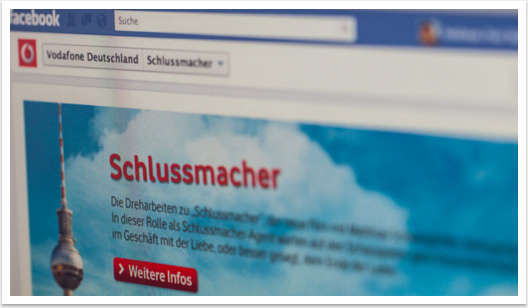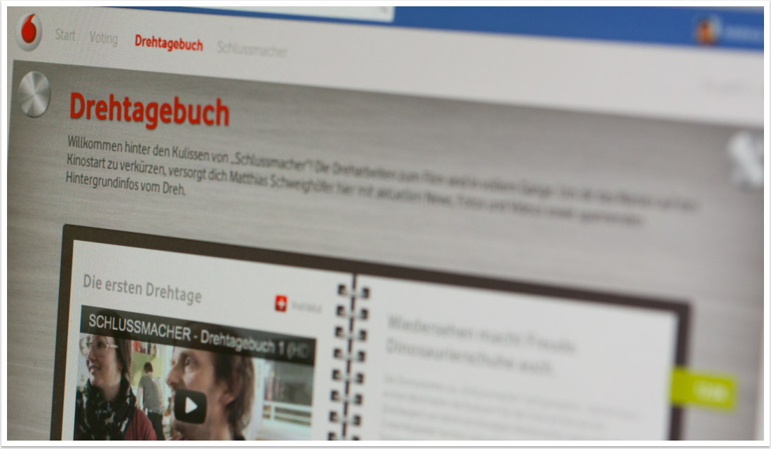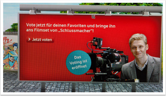 Im Rahmen der Testimonial-Kampagne auf Facebook entwickelte bgp e.media im Auftrag und in Kooperation mit EOL eine facebook-App für Vodafone: Per Videowettbewerb konnte man sich bei Vodafone um eine Komparsen-Rolle im Film „Schlussmacher“ bewerben. Nach Juryauswahl der 10 besten Videobewerbungen, wurden diese in der facebook-App zum öffentlichen Voting freigegeben. Zusätzlich wurden während der Dreharbeiten in Kooperation mit der Produktionsfirma ein Video-Drehtagebuch sowie ein Video-Live-Chat mit Matthias Schweighöfer realisiert. Beide Anwendungen wurden auf hoch performanten Media-Servern durchgeführt, um dem Ansturm der Fans gerecht zu werden. Ziel der Social Media Kampagne war das Nutzen der viralen Effekte zum der Ausbau der Vodafone-Fanbase bei facebook.