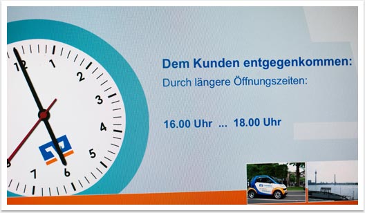 Anlässlich der anstehenden internen Vertreterversammlung der Volksbank Düsseldorf Neuss eG wurde bgp e.media mit der Umsetzung einer PowerPoint-Präsentation betraut. Es wurde ein Template erstellt, vor dessen Hintergrund alle weiteren Designelemente platziert wurden, was der Machart der Internetseite des Unternehmens entspricht. Die bildstarke Aufmachung in Kombination mit farbigen Grafiken stärkt dabei die Aussagekraft der Präsentation.