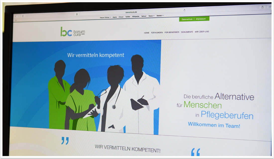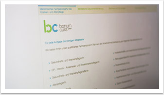 Die bonum cura GmbH vermittelt als Personaldienstleister medizinisches Personal in soziale und medizinische Einrichtungen. bgp e.media hat die neue Website in responsivem Webdesign auf Grundlage des Content Management Systems e.sy programmiert. Das intuitiv zu bedienende System bietet dem Kunden die Möglichkeit, den gesamten Webseiten-Inhalt eigenständig zu redaktionieren und zu verwalten.