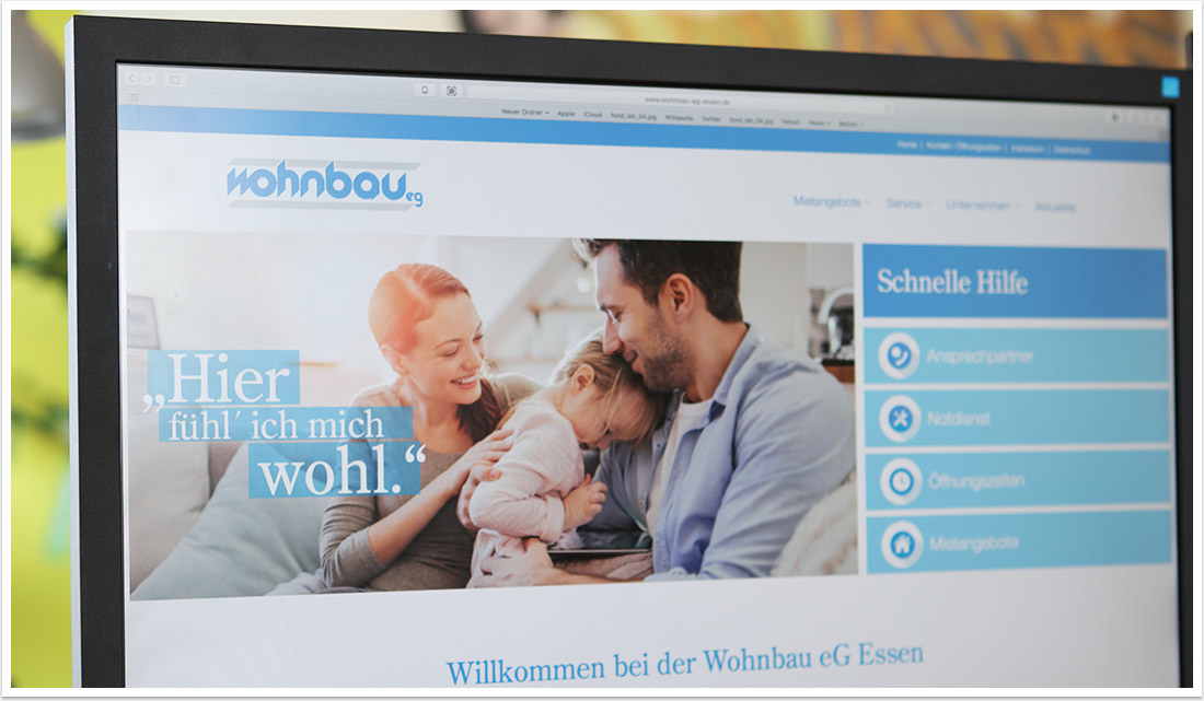 Seit 2011 betreut bgp e.media den Internetauftritt der Wohnbau eG Essen. Der aktuelle Relaunch im responsiven Webdesign mit nützlichen Funktionen, Tools und Features, unterstreicht die Service- und Mieterfreundlichkeit der Genossenschaft nun mehr denn je auch online.